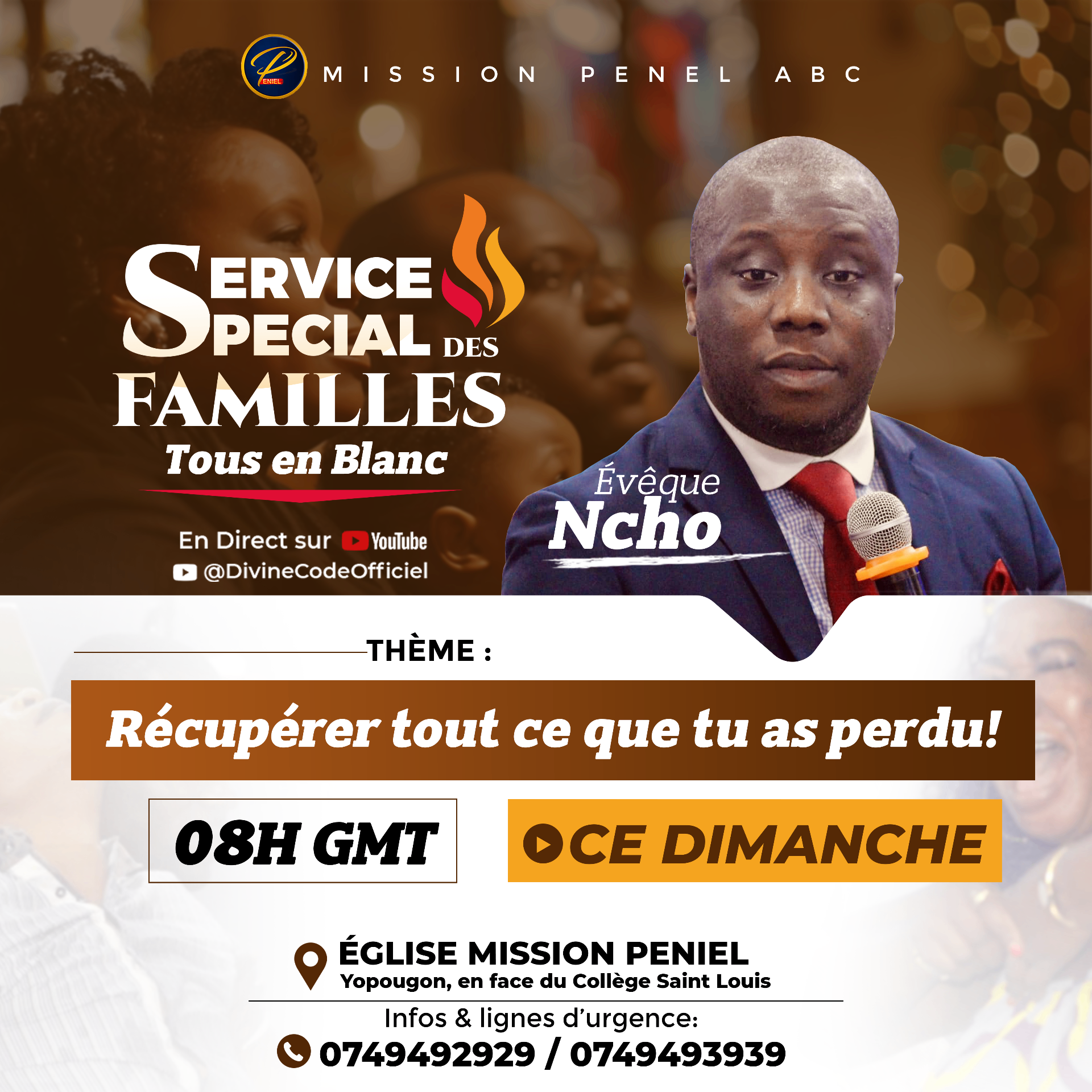 Peniel ABC est une église de délivrance à Abidjan (Yopougon Bel-Air). Chaque dimanche 08h, nous prions pour la restauration des familles et la délivrance en Jésus-Christ. Adresse : Yopougon Bel-Air, face au Collège Saint-Louis.